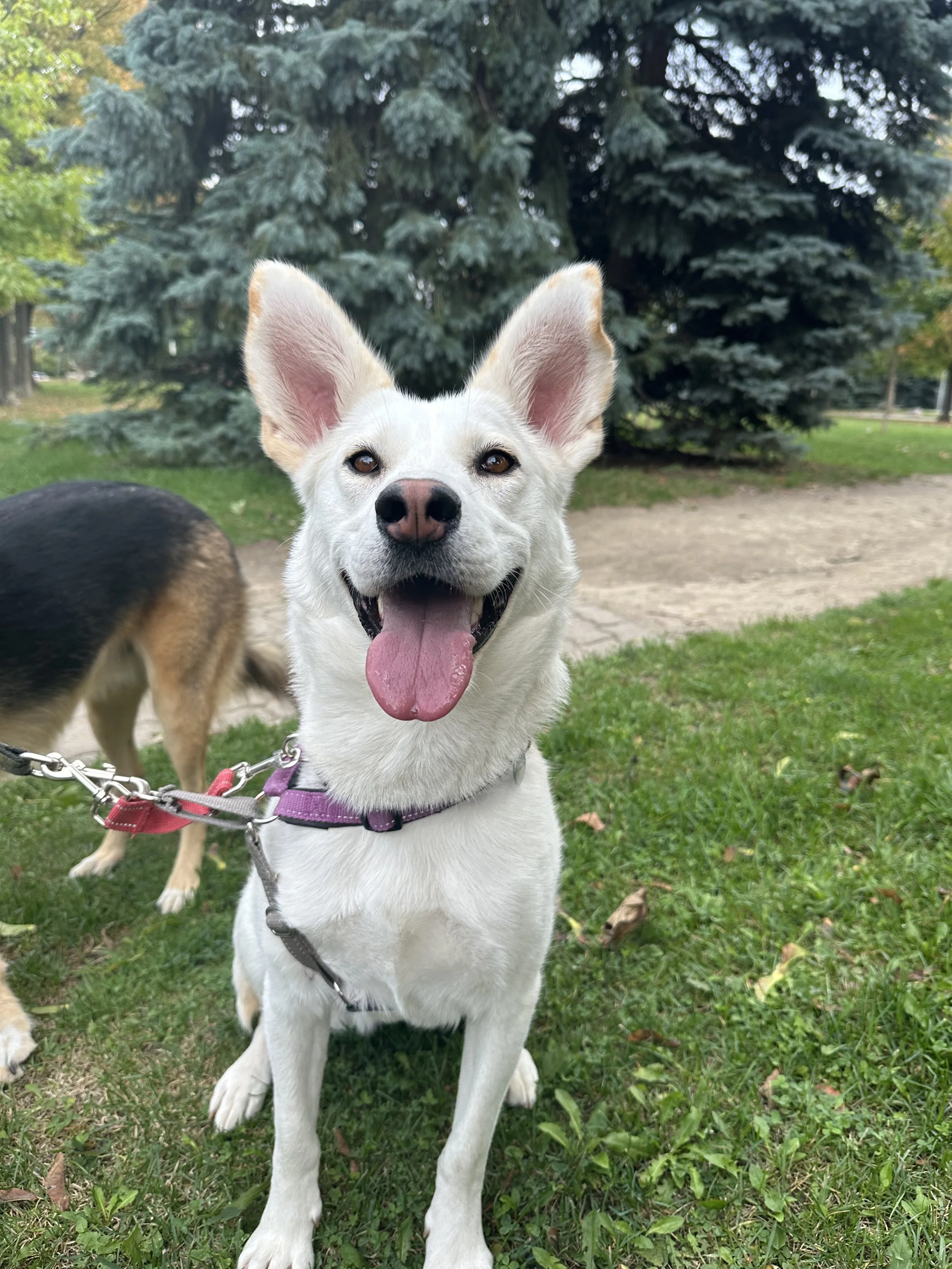 Meet Autumn! Autumn is a playful, quirky, and sweet girl who’s ready to start her next chapter after raising five beautiful puppies in our care. Now that her little ones have been weaned and adopted, this goofy, toy-destroying, belly-rub-loving mama is ready to find a family of her own!