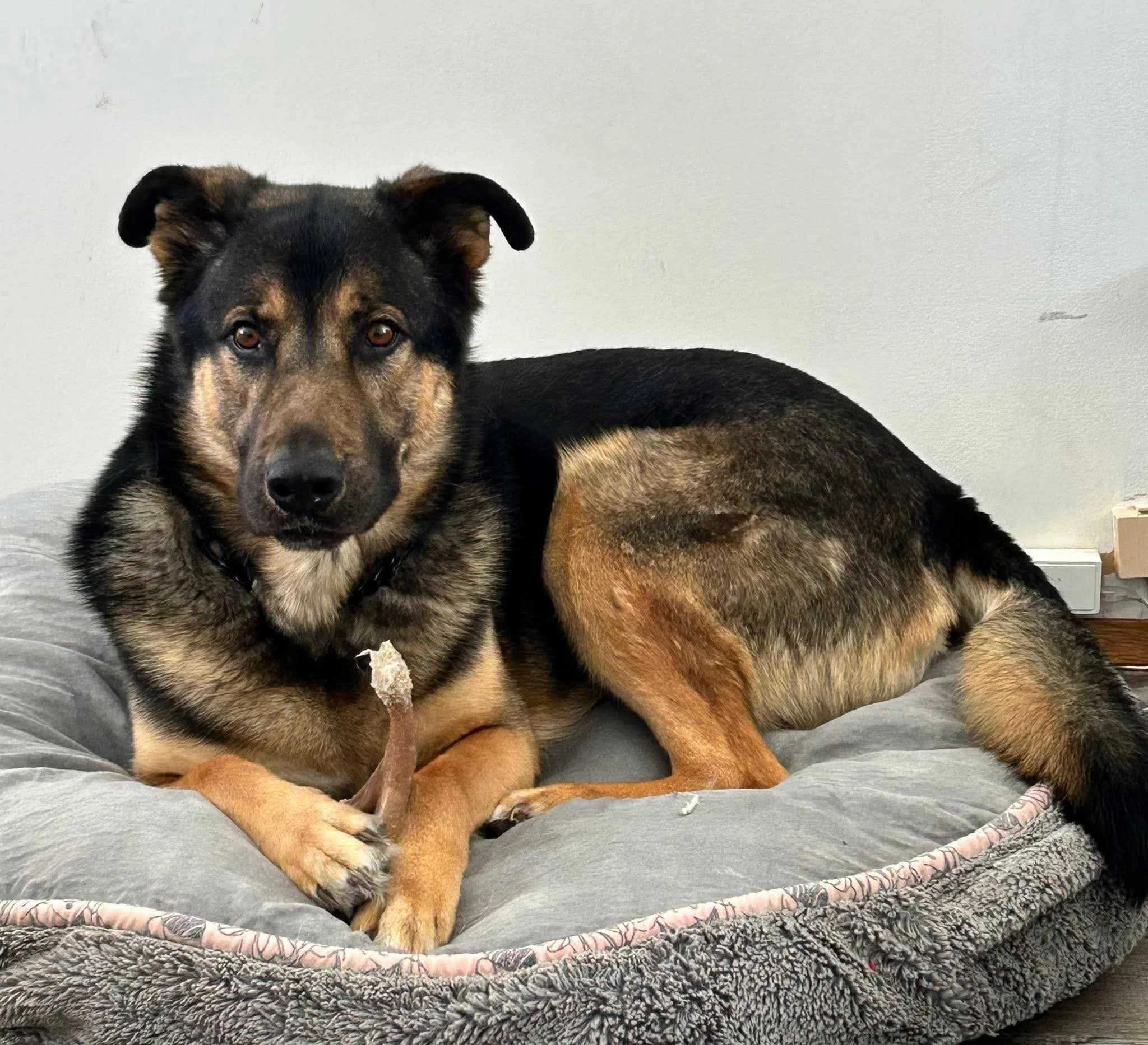 Charlie has lived in a home with both dogs and a cat and has done well with them. He’s a confident dog who communicates clearly - he’ll let you know when he wants attention or is ready for a walk, and he isn’t shy about using his voice. He can be a bit timid when meeting new people and isn’t overly interested in strangers at first, but he is a friendly guy underneath it all, even if his big bark says otherwise. He does well when left home alone, even outside of the crate, and while he doesn’t love being confined, he will go into his crate on his own when he wants some downtime. He already knows cues like sit, stay, and shake, and is currently working on skills like “stay” and “find.” Charlie is eager to learn and enjoys training, especially when treats are involved.