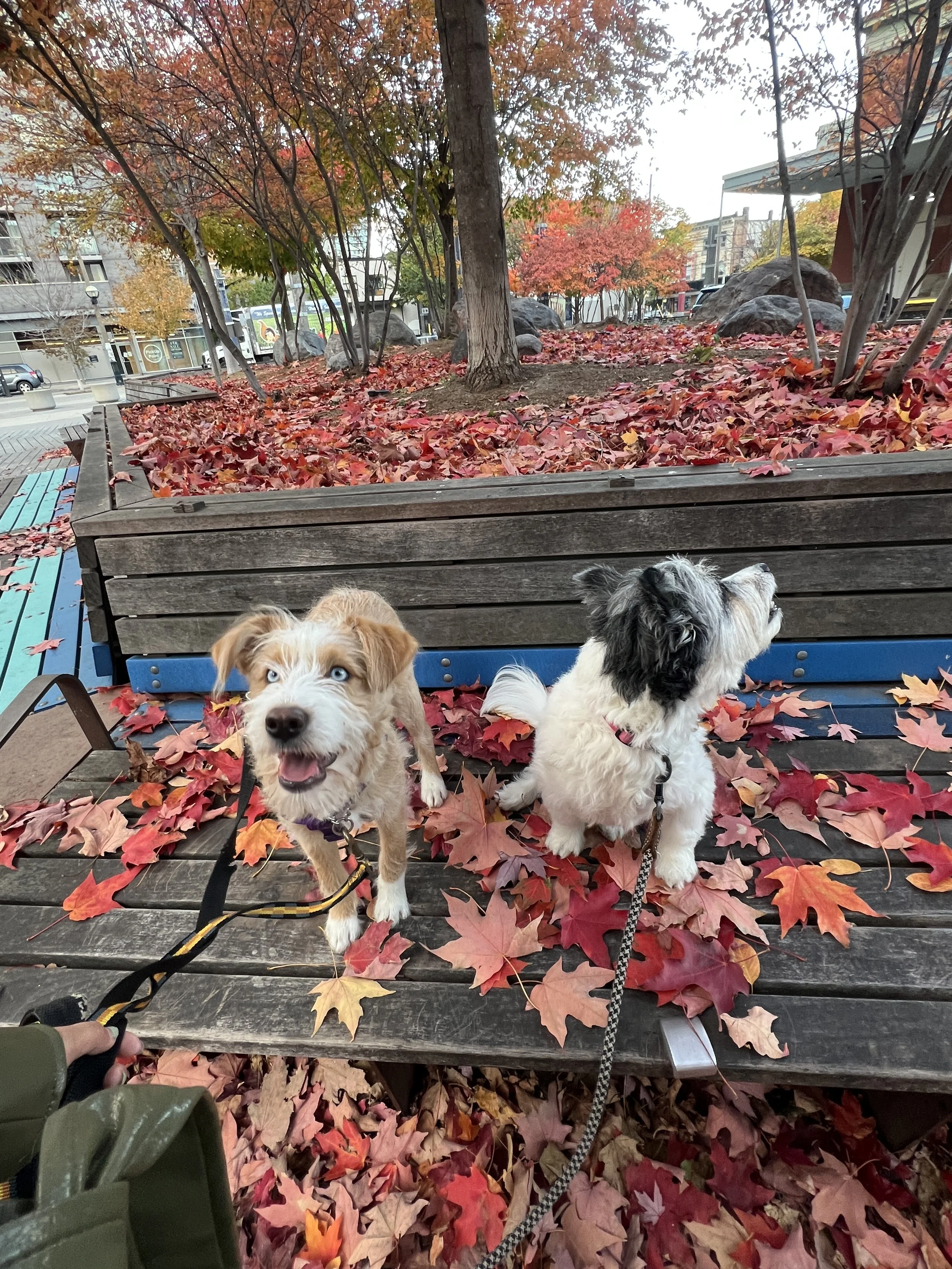 Kira loves nothing more than spending time with her humans, relaxing, and cuddling. She’s known to follow her foster parents around the house but is also taking well to crate training and can be left home alone in her crate or in another room for an extended period without issue. She adores her foster sister and their playtime together, and would love to share her home with another dog! She does have a tendency to guard her food if another dog approaches, but she’s improving in this area, so separate feeding is important. She has adapted well to city life and is currently working on her leash skills; she tends to pull but checks in nicely with her handler, has no prey drive, and greets other dogs calmly. She’s a bit nervous and timid around new people but warms up with time, who can blame her!