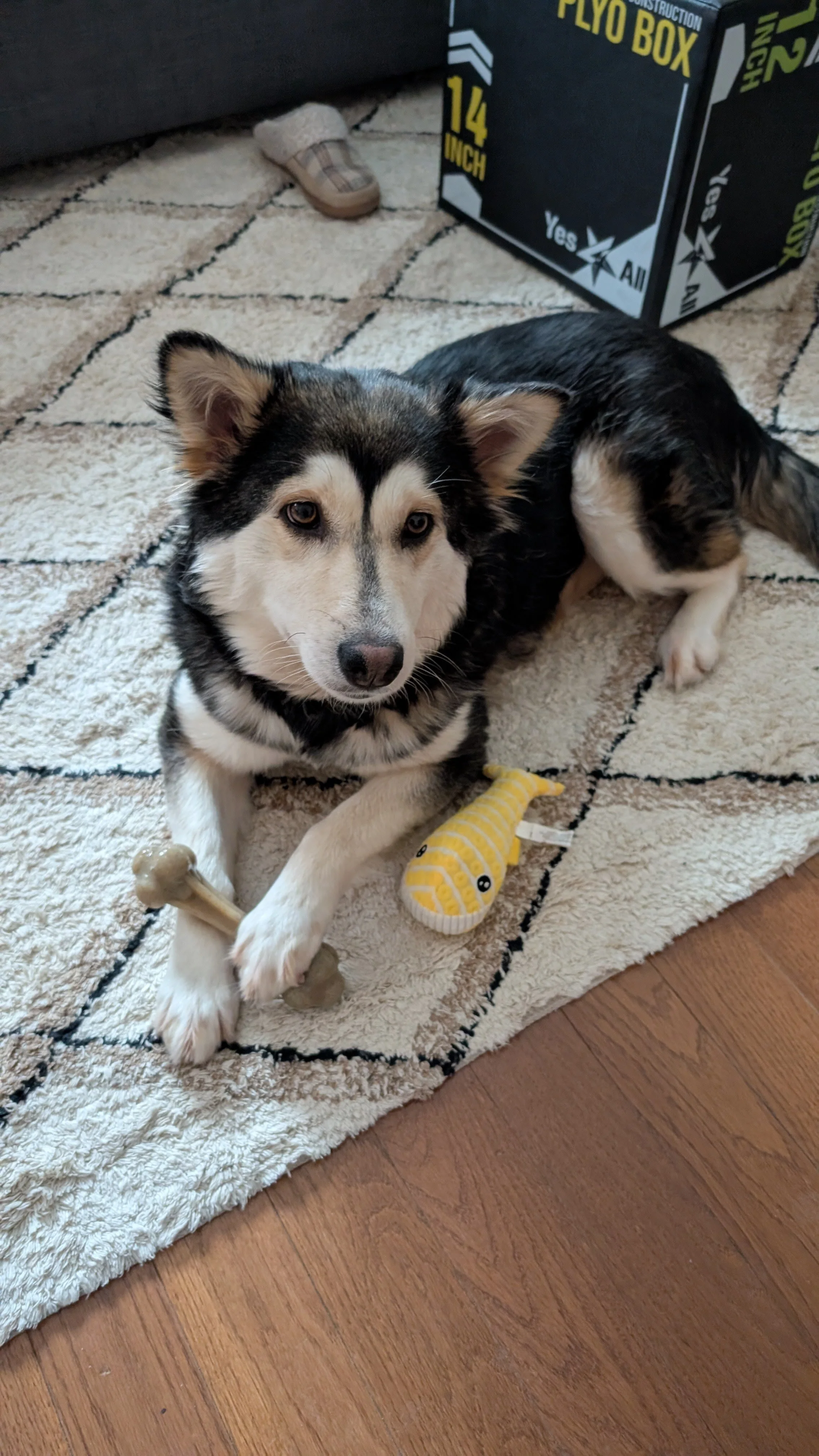 Misty gets along well with dogs and has met children of various ages, doing beautifully with them thanks to her gentle nature. She could do okay living with a dog-savvy cat, though she has shown some interest in chasing them and may try to nip at their tails when they’re picked up, so thoughtful introductions and management would be important. She’s house trained, has mastered sit, and is doing great with her crate training - sleeping soundly through the night and settling after a brief whine when left alone. She loves everyone she meets and does well with visitors, happily soaking up attention. While she can sometimes get a little excited and jump up, she would do best in a home with older, dog-savvy kids.